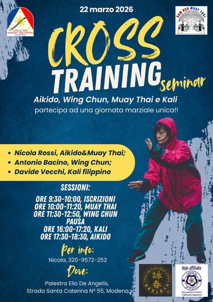 22 marzo 2026: seminario di Aikido, Muay Thai, Wing Chun e Kali c/o Palestra Frank di Modena sita in Strada Sant’Anna 105. . Seminario a cura di Nicola Rossi, Davide Vecchi e Antonio Bacino