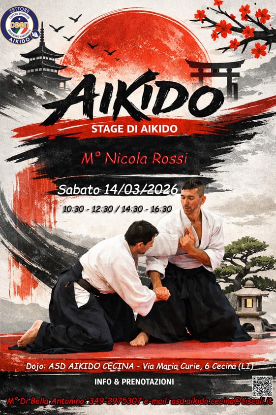 22 marzo 2026: seminario di Aikido con esami CSEN c/o Palestra ASD AIKIDO CECINA di Cecina sita in Via Curie n°6 (LI). Seminario a cura di Nicola Rossi.